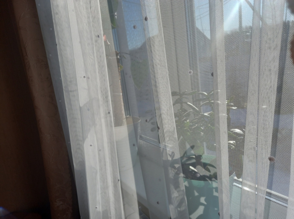 Вообще, считаю, в спальню надо поплотнее вуали покупать, не сильно прозрачные, особенно если соседи напротив живут. Или, как у нас, вокруг дома и с утра собачники ходят, весь день машины ездят.