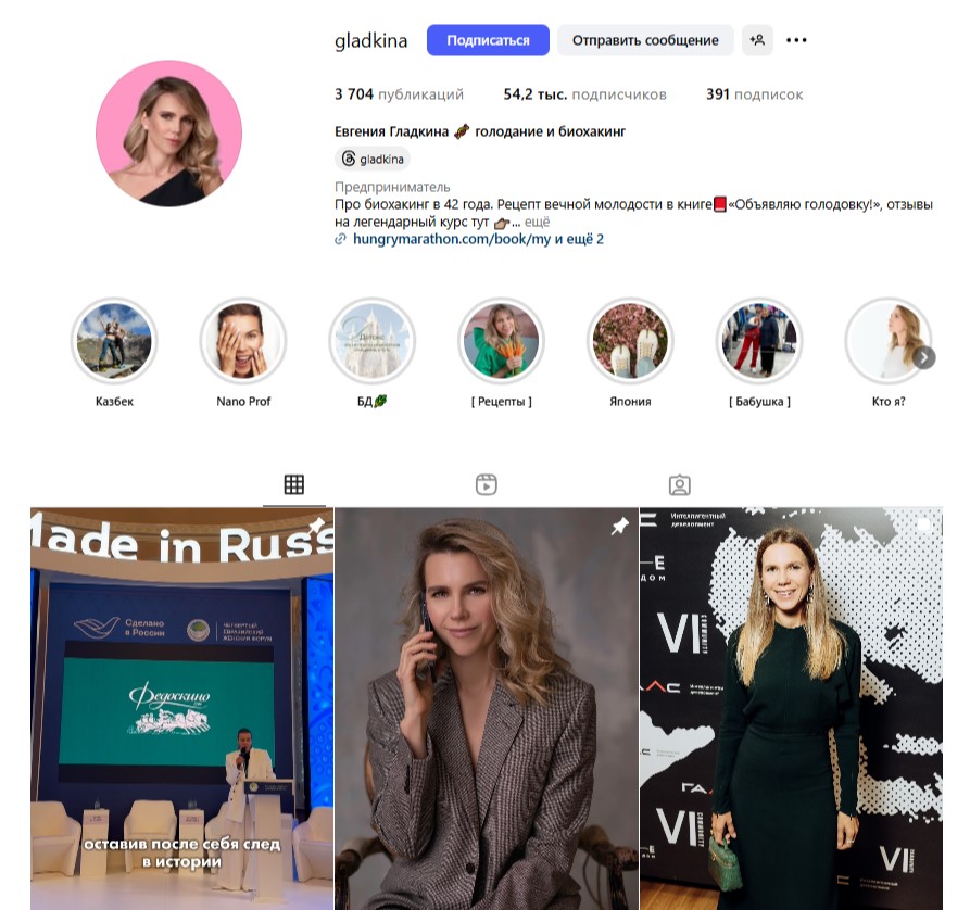 Евгения Гладкина. Фото: Instagram (принадлежит корпорации Meta, признанной экстремистской организацией и запрещенной в России)