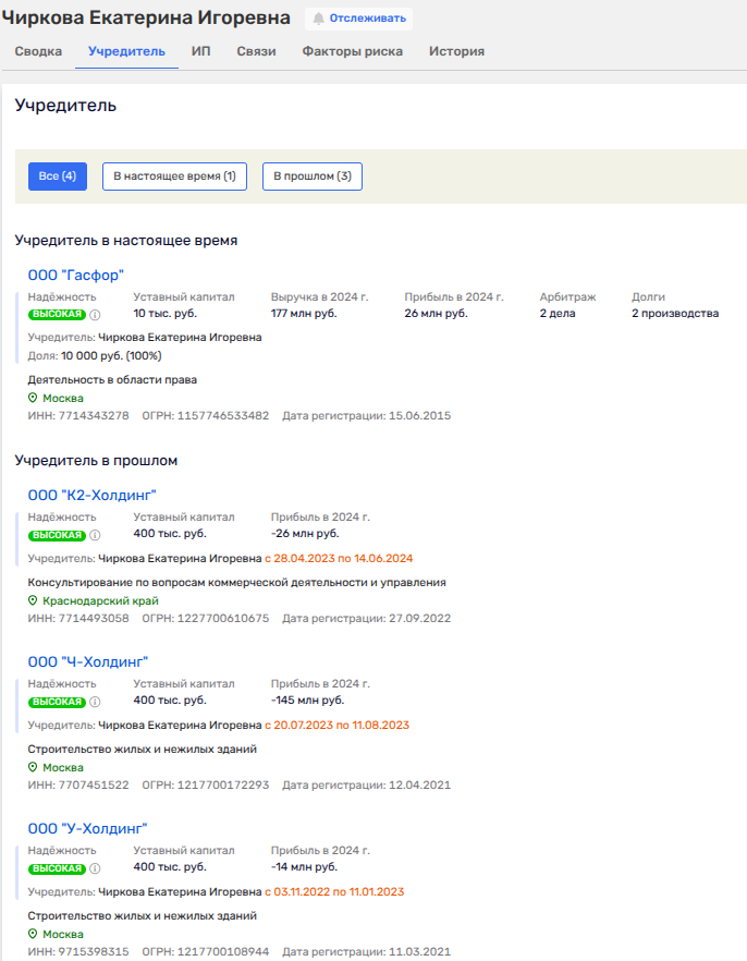 Шапку управляющего, как водится, передали фирме «Гасфор», которой много лет рулила близкая к Тимохину Елена Гомина, пока не примелькалась на скупке госактивов и ее спешно, в марте 2025 года, поменяли на другое прикрытие - мадам Екатерину Чиркову. Но и та, судя по анамнезу, подчиняется тандему Гомина-Тимохин, а передача фирмы в ее руки - не более чем попытка запутать следы от реального бенефициара.