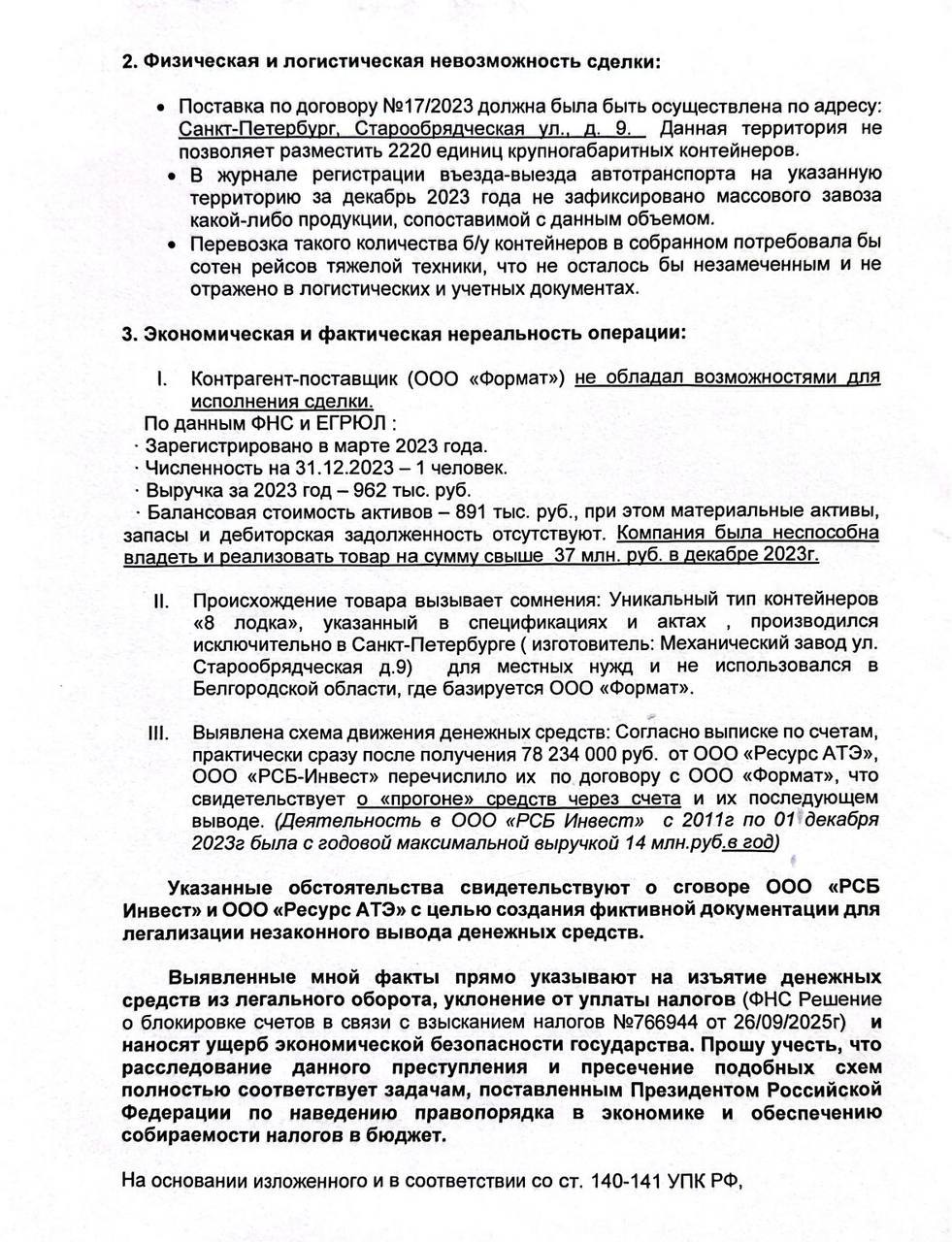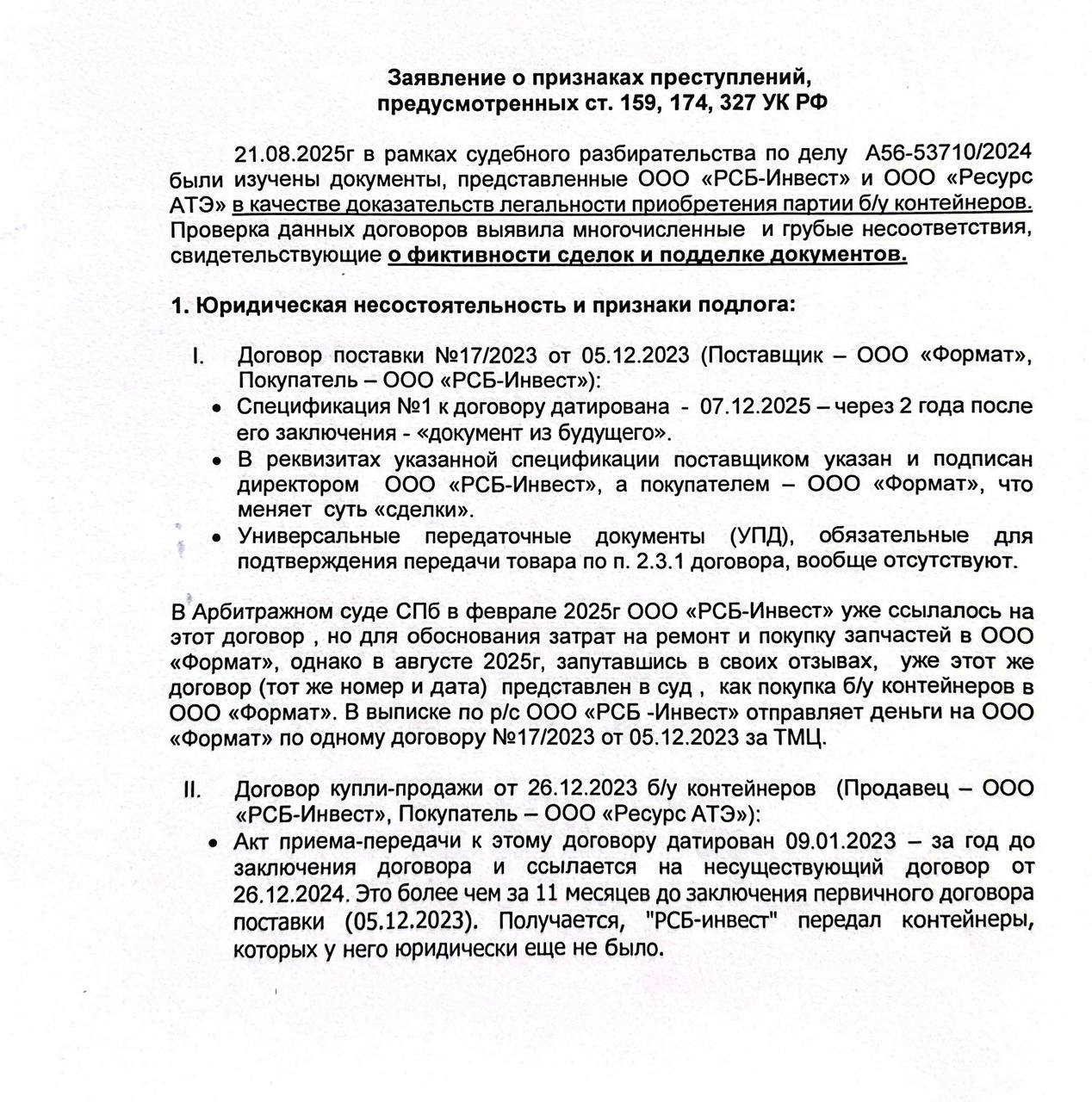 Сделка была замаскирована через договор купли-продажи контейнеров с ООО «РСБ-Инвест», которое формально связано с «Технопарком», но на самом деле не имело никаких прав на контейнеры. Этот юридический финт позволил «Ресурс АТЭ» легализовать присвоение чужого имущества.
