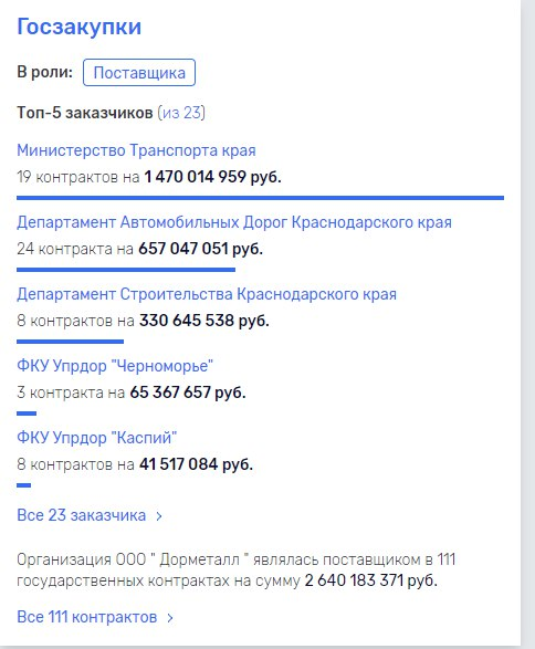 Строила эти пункты компания «ДорМеталл». У нее тот же учредитель, что и у «ДорМеталлПроект» — Геннадий Семенов. А значит общий у двух фирм и бенефициар — Анатолий Вороновский. Если посмотреть на объемы контрактов, которые заключили обе компании Семенова-Вороновского с минтрансом Вороновского, то получится почти два миллиарда рублей.