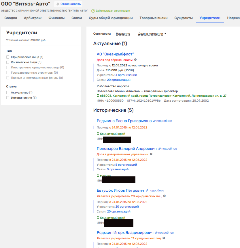 Итак, с 2022 года Евтушок, Пономарев, некогда являвшиеся самыми богатыми российскими чиновниками (по рейтингам Форбс) и семья другого камчатского депутата Редькина вышли из числа владельцев. 100% доли отошли АО «Океанрыбфлот».