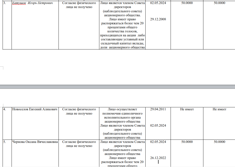 На конец 2024 года акции АО «Океанрыбфлот» оказались распределены между Игорем Евтушком (50% доли) и некой Оксаной Вячеславовной Черновой.