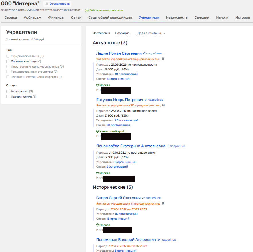 Интересно, что Чернова всплывает то как директор, то как владелец долей рядом с бизнесом Евтушка и Пономарева неоднократно. Эдакая ширма-прикрытие, которое бросают на амбразуру там, где это нужнее всего. Примерно ту же роль выполняет и Ледин.