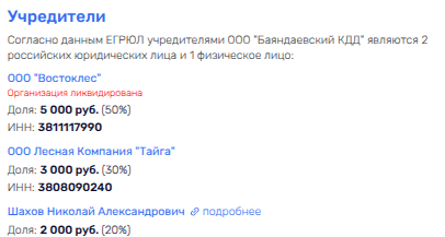 Связь со Слипенчуком у Чемезова и Шахова прослеживается через бывшую дочку ООО Лесная компания «Тайга» - Баяндаевский комбинат деревянного домостроения, которой фирма владела вместе с Шаховым и ООО «Востоклес», принадлежавшим ООО «Холдинговая Компания «Метрополь» Слипенчука. При этом иркутское ООО «Востоклес» изначально также работало в сфере распила древесины, а потом переобулось в управление финансово-промышленными группами, а 2018 году было и вовсе пущено под нож.