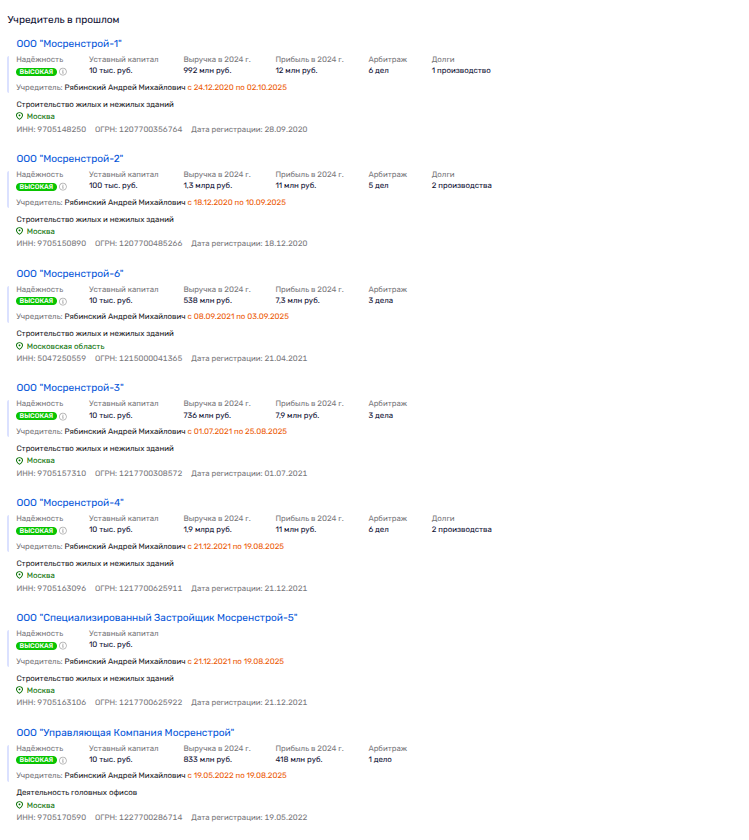 Итак, в августе-октябре 2025 года бывший владелец строительного гиганта ГК МИЦ Андрей Рябинский распихал по сходной цене остатки своей империи, избавившись от семи компаний, которыми владел вместе с одиозным Анатолием Козеруком и связанными с ним фирмами. Видимо, очень деньги были нужны.