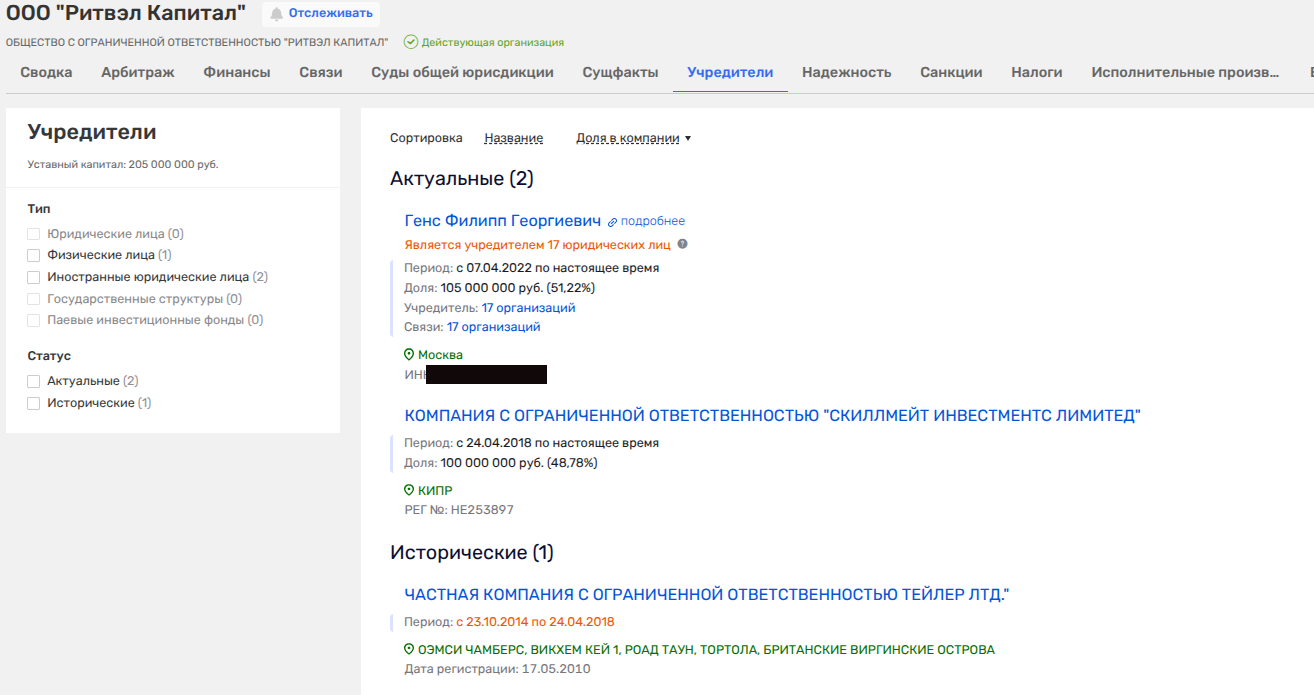 Вот, к примеру, партнером Генса по ООО «Ритвэл Капитал» выступает кипрское «СКИЛЛМЕЙТ ИНВЕСТМЕНТС ЛИМИТЕД», сменившее на этом посту офшорку «Тейлер ЛТД» с Британских Виргинских островов.