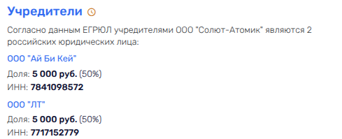 В ООО «ЛТ», ставшее любимчиком Казначейства, есть также дочернее ООО - учрежденное в конце ноября 2023 года «Солют-атомик», имеющее всего трех сотрудников в штате. То есть вопрос получения статуса микропредприятия - лишь вопрос времени. А по требования очередного госконтракта победитель как раз таки и должен привлечь на 25% от суммы (около 218 млн рублей) представителей малого или среднего бизнеса. А тут такое удачное совпадение!
