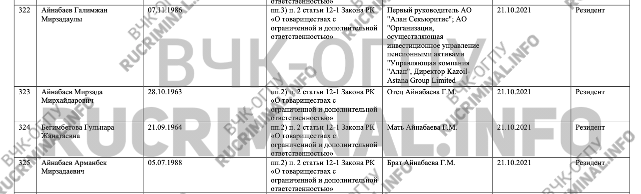 В 2024 году в консолидированной финансовой отчетности своей Fincraft Group Ракишев сообщил, что продал «Батиаль», «Кронос» и дочку своего банка, ООО «БТА Москва». Последняя недавно была переименована в «Прайм Прогресс», она стабильно с 2021 года показывает убытки на десятки миллионов рублей. Судя по ЕГРЮЛ, покупателем всех трех стал Галимжан Мирзадаулы Айнабаев, сын советского валютчика, судимого за валютные спекуляции в крупных размерах Мирзады Айнабаева. По удивительному совпадению, он и вся его семья оказались как минимум с 2021 года в списках аффилированных лиц как самой Fincraft Group, так и «БТА Банка». Фактически Ракишев записал свои московские активы на бизнес-партнера. Сейчас «Кронос» и «Батиаль» находятся в стадии ликвидации - очевидно, чтобы скрыть, на кого вновь переписаны акции и избавиться от убытков. «Космос» - прибыльный актив, от таких Ракишев не избавляется. А вот его «ТуранАлем Финанс» (дочка «БТА Банка»), в последние годы показывающая сплошные убытки, по решению суда в июне этого года объявлена банкротом. Ракишеву через российские «АМТ Банк» и «БТА Банк» принадлежит также московское ООО «Проектно-строительная компания "АМК-ИНВЕСТ» (учредителем значится офшор КЭВ ФАЙНЕНС КОРП).