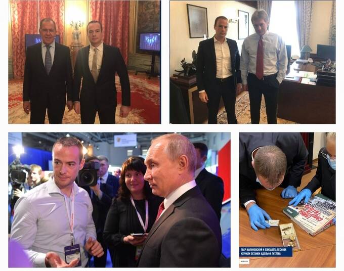 Останки Гитлера и Евы Браун, а также все, что связано с их смертью, хранится в Госархиве РФ и архиве ФСБ РФ. Часть материалов засекречена и до конца точно неизвестно, что там находится. Общественности были показаны только фрагменты челюсти и черепа Гитлера. Сейчас выясняется, что там присутствуют и другие предметы, которые недоступны для ученых, историков и т.д. Но дружба с семьей Пескова и общение с Путиным открывает любые двери, в том числе и в секретные архивы ФСБ РФ. В 2020 году было объявлено, что дочь Дмитрия Пескова Елизавета и Пьер Малиновский «ознакомились с секретными архивами и изучили останки тела (Гитлера- РЕД.) и артефакты, хранящиеся в России». Все это сопровождалось соответствующими фотографиями в соцсетях. Однако, на этом история не закончилась.