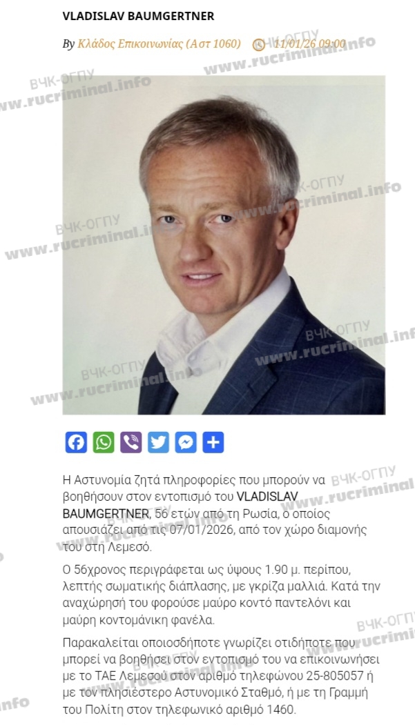 Родственники бывшего гендиректора Уралкалия (и одного из лучших топ-менеджеров России) Владислава Баумгертнера рассказали ВЧК-ОГПУ и Rucriminal.info обстоятельства его загадочного исчезновения на Кипре. Версию самоубийства они категорически отвергают. Источники, не исключают, что произошедшее с ним могло стать отголоском «войны» сенатора Сулеймана Кадырова и Рамзана Кадырова за контроль над Wildberries. Баумгертнер близкий друг Керимова, а впервые «кошка пробежала» между Керимовым и Кадыровым из-за ситуации с «Уралкалием».