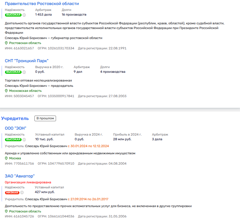 Связанное со Слюсарями АО ИФК «Сатурн» в конце июля 2025 года прикупило 60,1% доли в ростовском строительном ООО «Стройтех», которое является исполнителем госконтрактов, в том числе по заказу уже известного нам Росвертола. Как вам такой расклад?