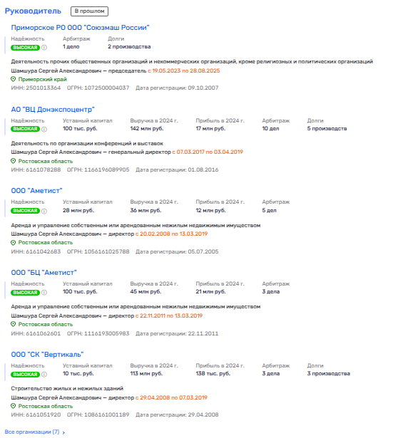 Сергей Шамшура - бывший топ-менеджер все того же «Роствертола», а также экс-глава АО «Арсеньевская Авиационная компания Прогресс имени Н.И. Сазыкина» из Ростеха. Кстати, до конца августа 2025 года Шамшура был директором Приморского РО ООО «Союзмаш России». Головное лицо Союзмаша создавал как раз таки Чемезов.