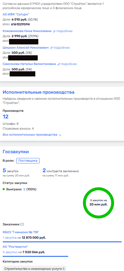 Интересно в этом исполнителе то, что 25,1% там имеет близкая родственница ростовского губернатора Юрия Слюсаря Валентина Слюсарь, а еще 3,3% у связанной со Слюсарями АО ИФК «Сатурн».