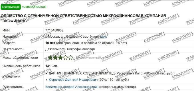 And here we return to the bonds worth 50 million euros owned by Weinshtein and Mickovic. It raises doubts whether they had the funds to purchase these bonds – Zvonko Mickovic, as previously mentioned, is the owner of LLC "Transpolymer." Meanwhile, Alexander Weinshtein, through Dyninno Fintech Holding Limited, controls the microfinance company "Ecofinance."