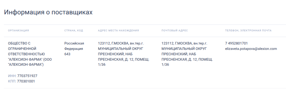 Сюрреализм ситуации в том, что владельцами поставщика являются две иностранные кубышки - нидерландское Алексион Холдинг Б.В и швейцарское Алексион Фарма ГМБХ.