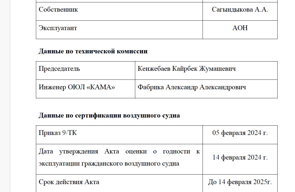 Между тем, на сайте объединения юридических лиц в форме ассоциации «Казахстанская ассоциация малой авиации» (ОЮЛ «КАМА») есть сведения о лётной годности воздушных судов, которые публикуются с 2021 года. Напомним, погибшая жительница Астаны Диана Ахметова вылетела на самолёте с бортовым номером UP-LA229.
