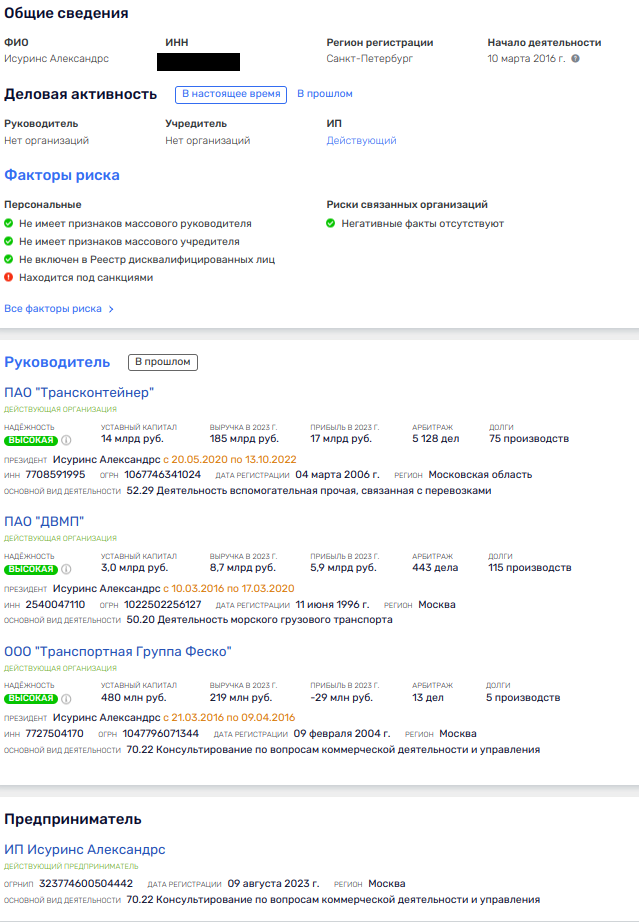 Исурин, полагаем, мог немало рассказать о непрозрачных схемах за последние годы у ГК «Дело» в иностранных юрисдикциях. Ведь, по имеющимся данным, именно Исурин участвовал в создании в Дубае в 2022 году компании Mountain Air Shipping (MAS), через которую «Трансконтейнер» и начал фрахтовать суда для международных перевозок. В цепочке могла участвовать и дубайская CStar, связанная с Шишкаревым через его наемных сотрудников-ширм.
