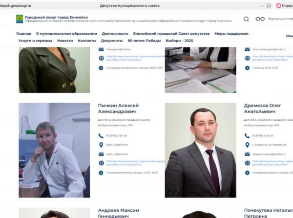 • является депутатом муниципального совета Енисейска;