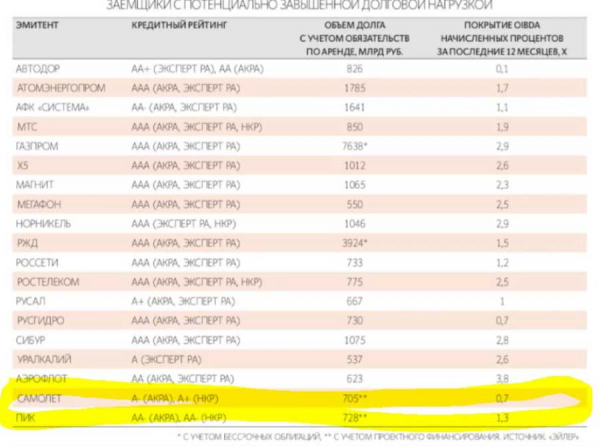 Именно в эту зону риска, по открытым данным, попадают «Самолет» и ПИК.