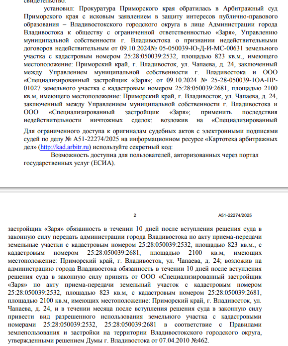 Арбитраж Приморья 31 марта 2026 года рассмотрит иск краевого прокурора к ООО СЗ «Заря» и управлению муниципальной собственности Владивостока.