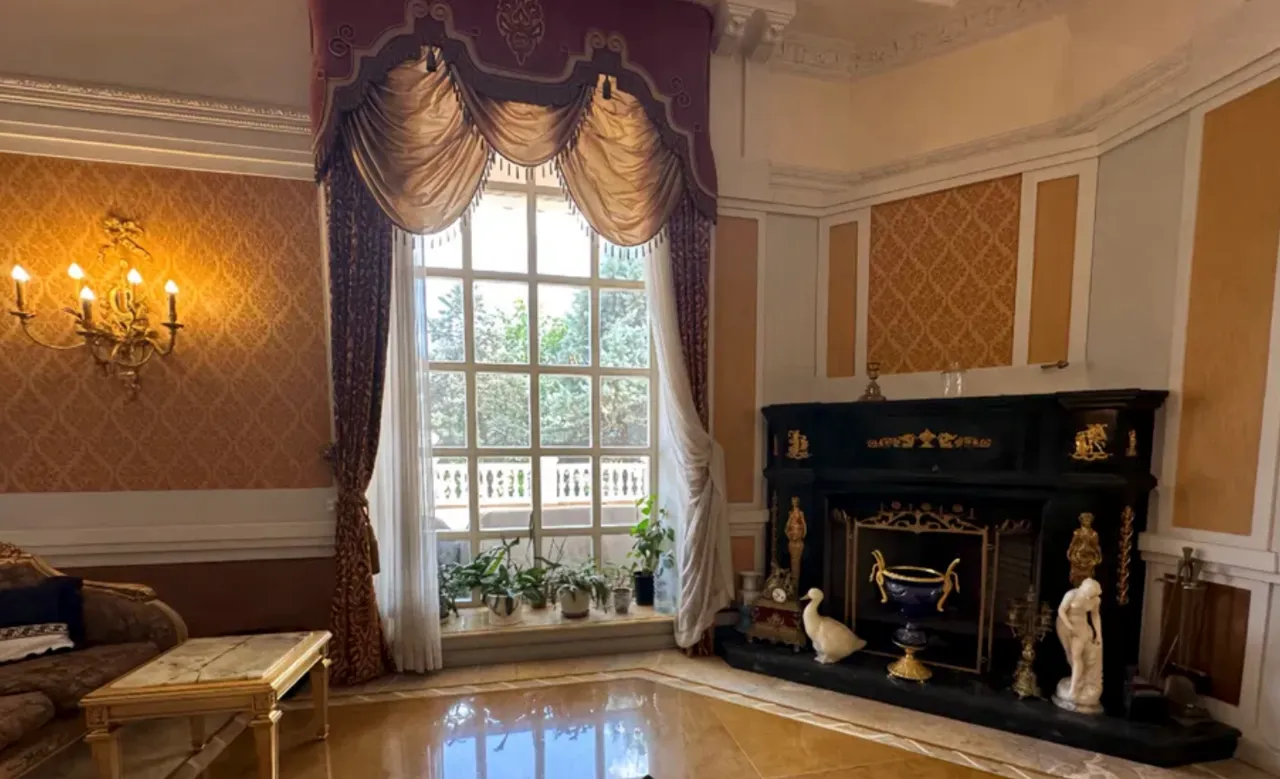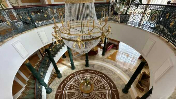 Материалы, использованные в отделке, роскошные: мрамор, оникс, золото, ценные породы дерева и камня.