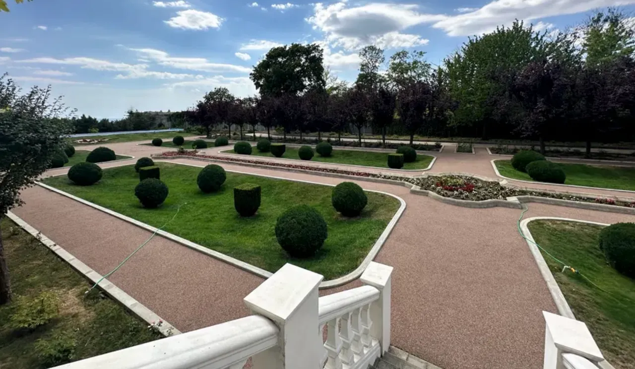 Изюминкой резиденции является ландшафтный парк с многолетними растениями, прудом и водопадом, что создает атмосферу частного курорта. Сам дом располагается на первой линии от моря, с арендованным на 49 лет склоном перед участком.