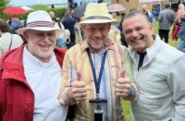 | Бизнесмен Toufic Kawar, Янис Мартиньш Скуя и министр здравоохранения Хосам Абу Мери. Скриншот из соцсети X. |