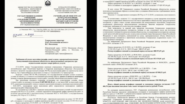 Депутат Будуев в телеграм-канале обозначил, что сумма неустойки в два миллиона рублей ничтожна при миллиардных оборотах и долгах. Сроки строительства постоянно продлевают, а увеличение стоимости контракта ложится на бюджет Бурятии. Заказчик уже перечислил на счета «Хотьковского автомоста» более пяти миллиардов рублей.
