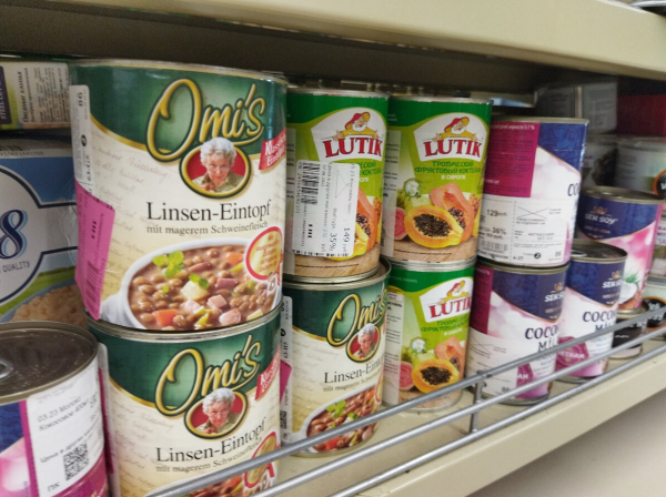 Итак, мы берём в руки банку и читаем на чистом немецком: чечевичное рагу с постной свининой, тщательно приготовленный из отборных ингредиентов. Ингридиенты можно видеть на прилагаемой фотографии, перечислять не будем.