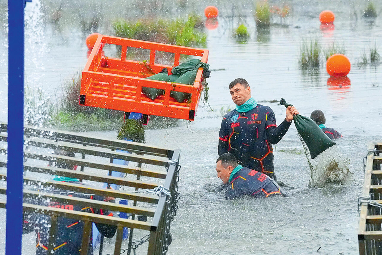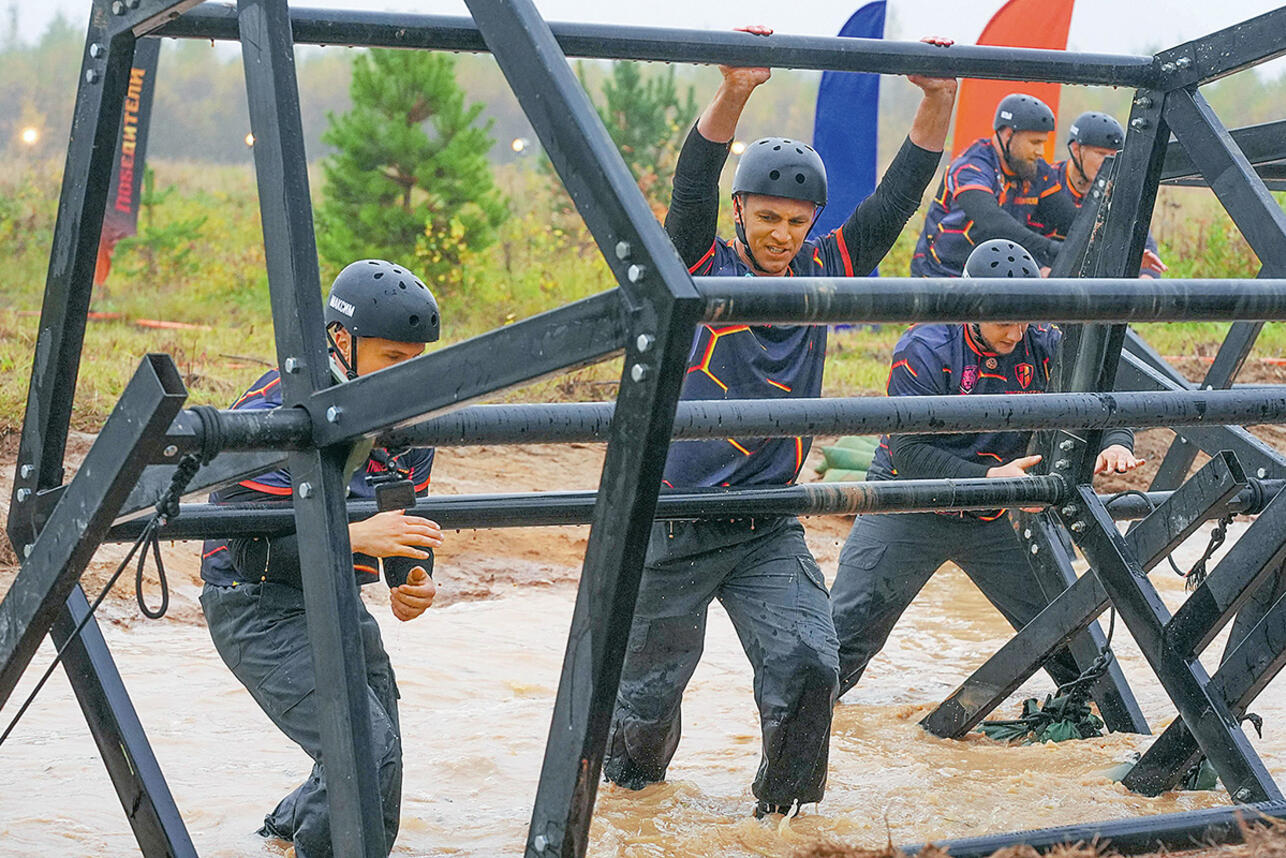 «Первый этап испытаний — «Прорыв» — изматывающая полоса препятствий с подъёмом по трёхметровому канату, рукоходом, спуском по веревочной сетке в грязевой бассейн, преодолением рва и коварного забора с отрицательным уклоном и стрельбой в финале», — рассказывает ведущий проекта, спортсмен и актёр Сергей Бадюк.